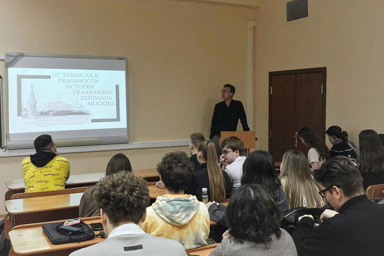 В рамках встречи ассистент кафедры российской политики ФП МГУ Александр Зайцев рассказал о специфике планирования и реализации масштабных градостроительных проектов и об истории развития столицы.