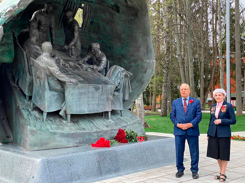 Возложив вместе с председателем Совета ветеранов войны и труда МГУ Н.М. Данилкович цветы к мемориалу, сооруженному по инициативе Московского университета на месте исторического совещания командования Западного фронта и представителей Ставки Верховного главнокомандования, на котором в октябре 1941 года решались стратегические вопросы обороны столицы, ректор МГУ подчеркнул особый характер предстоящего торжества.